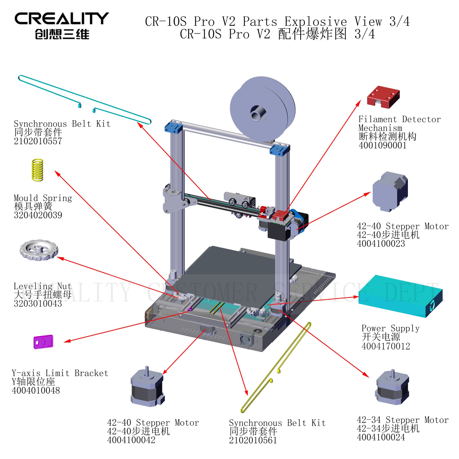 CR-10S Pro V2 Parts Explosive View 3/4