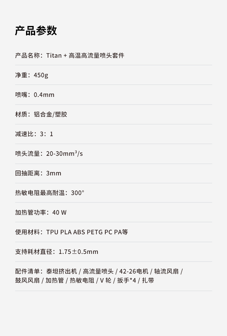 Titan挤出+高温高流量喷头套件