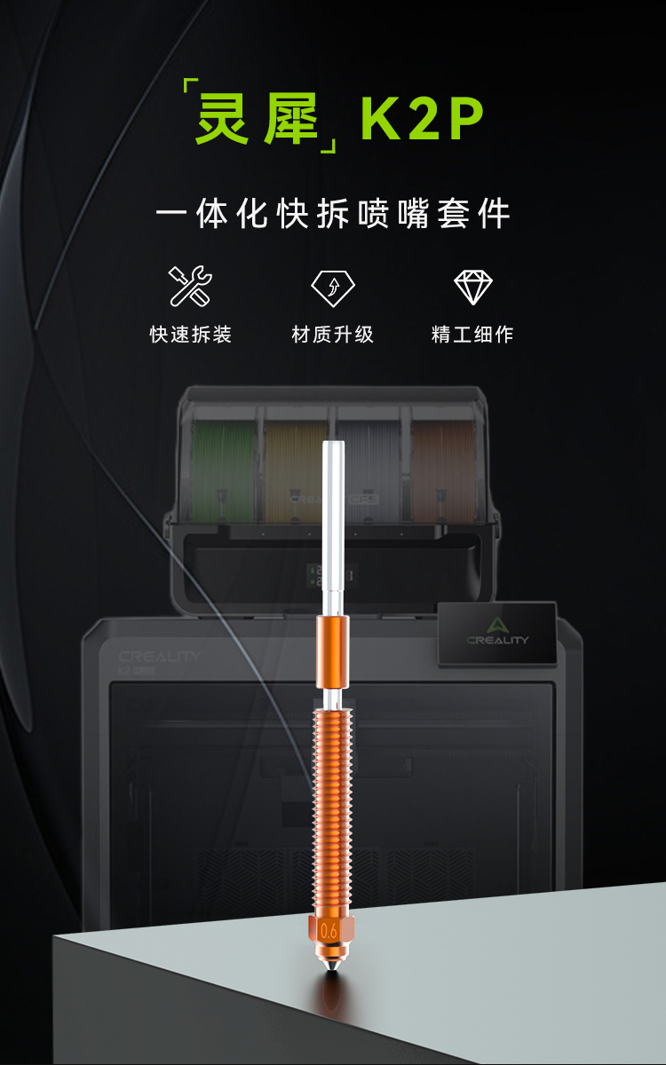 “灵犀” K2P 一体化快拆喷嘴-0.2mm(适配K2/K2 Plus/Creality Hi) “灵犀” K2P 一体化快拆喷嘴-0.4mm(适配K2/K2 Plus/Creality Hi) “灵犀” K2P 一体化快拆喷嘴-0.6mm(适配K2/K2 Plus/Creality Hi) “灵犀” K2P 一体化快拆喷嘴-0.8mm(适配K2/K2 Plus/Creality Hi) “灵犀” K2P 一体化快拆喷嘴套件(适配K2/K2 Plus/Creality Hi)