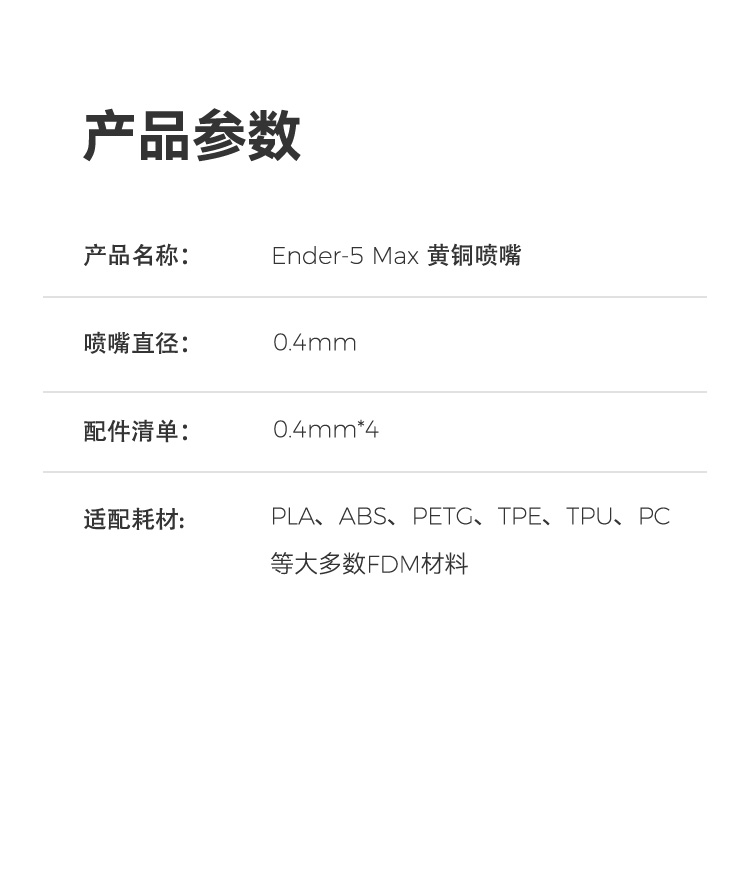 Ender-5 Max 黄铜喷嘴套件-4Pcs