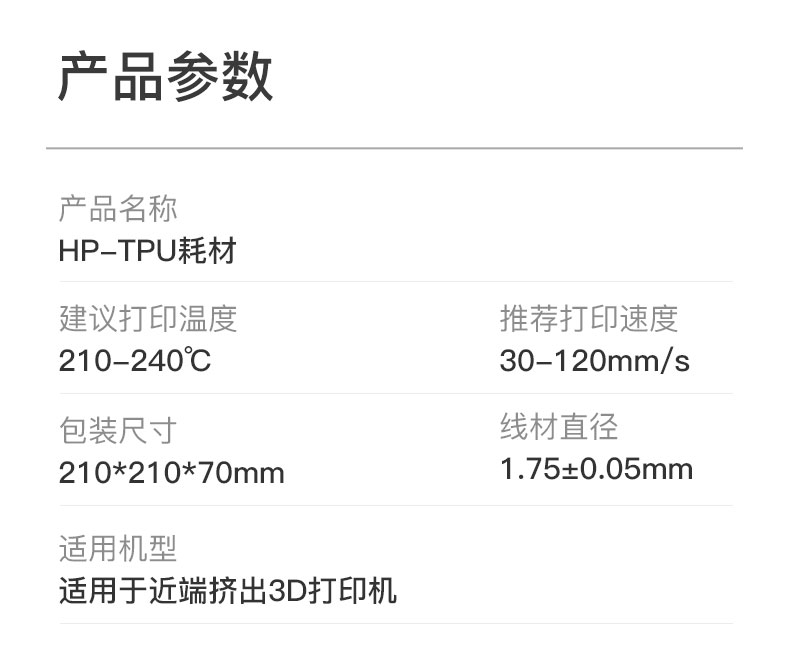 HP-TPU FDM 3D打印机耗材1.75mm线材 1kg
